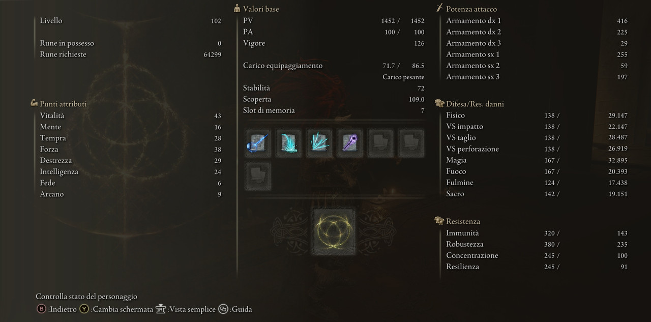 Lo stato attuale del personaggio è questo: