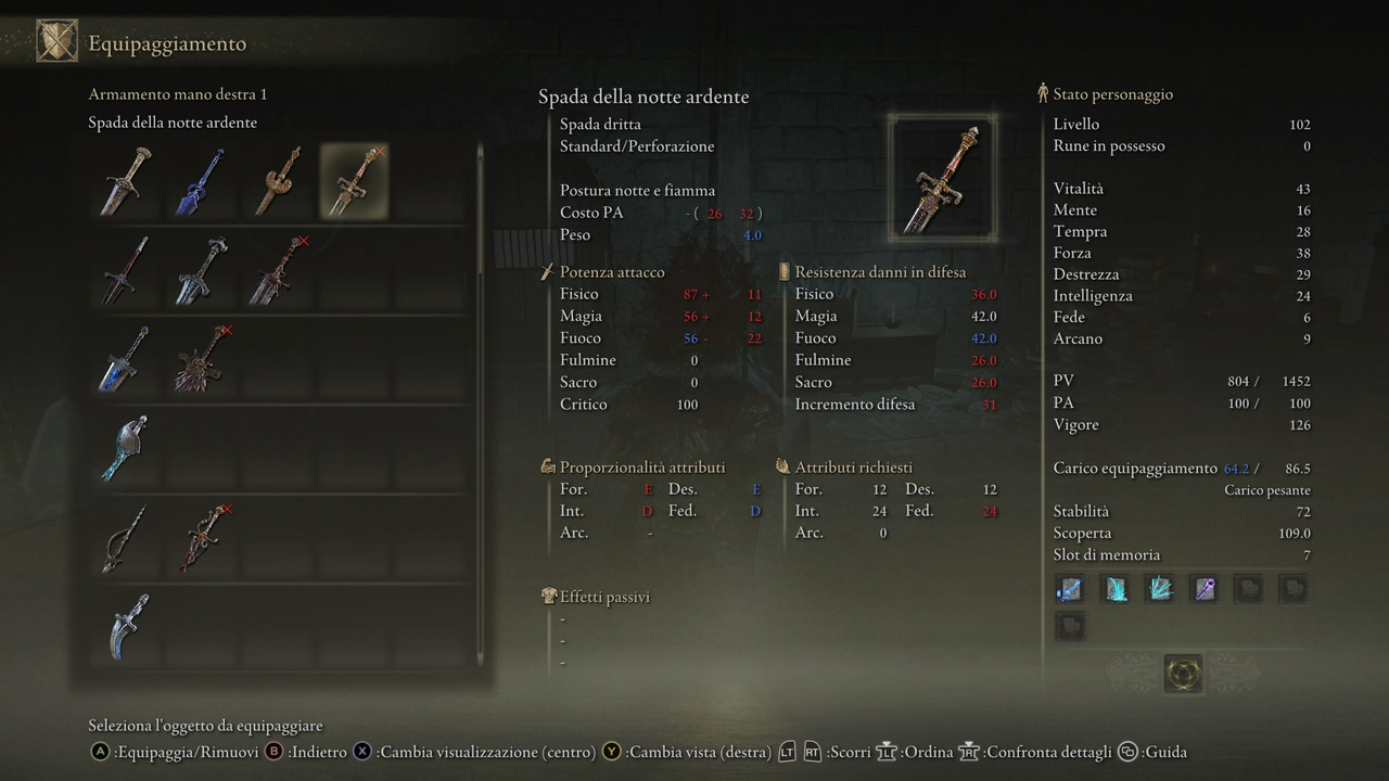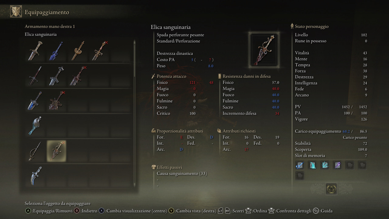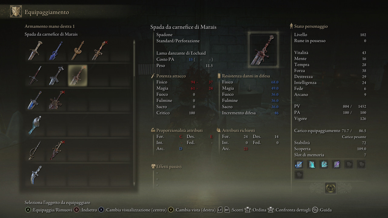 Alla fine uso sempre spada e scudo con armatura abbastanza protettiva, cercando di mantenere una certa velocità nei movimenti.