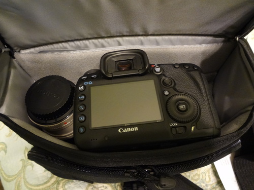 2. obiettivi più grossi del 18-105 (come diametro, più che altro) non entrano... idem, flash, battery grip, etc. infatti, da quando ho il battery grip, sono costretto a posare la reflex in verticale (senza il flap di cui sopra) e senza obiettivo >.<