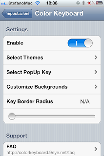 Simpatico tweak che ci consente di modificare il colore della tastiera. La parola d'ordine è "pulizia", quindi niente rosa shoking, grazie! Nel mio caso ho optato per un bel tema nero. A voi la scelta... Il grado di personalizzazione è abbastanza elevato quindi il limite è solo la vostra fantasia.