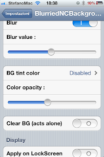 Il terzo serve ad aggiungere un fantastico effetto Blur rendendo il Centro Notifiche semitrasparente. Questo tweak è abbastanza personalizzabile e possiamo modificare il grado di sfumatura, la trasparenza ed il colore.